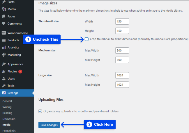 Metode 1: Gunakan Pengaturan Media Default WordPress
