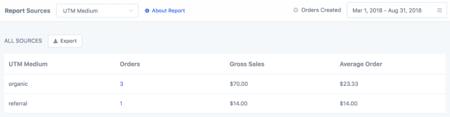 Lebih jauh, Anda bahkan dapat mengeklik untuk melihat pesanan spesifik yang berasal dari tag UTM tertentu. Ini memungkinkan Anda untuk mengelompokkan pelanggan menurut kampanye yang mereka datangi atau media tautan. Misalnya, menemukan semua pelanggan yang datang melalui iklan Facebook.