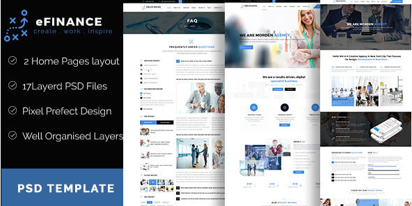 eFinance adalah Template PSD perdagangan dan Keuangan yang sangat baik, kualitas eFinance cocok untuk situs web perusahaan seperti penasihat, pengacara, perdagangan, akuntan perusahaan, keuangan, fiskal, cakupan, melakukan investasi, pendanaan, investor, peraturan, pensiun, pembelian dan penjualan, dan sebagainya maju. Ini bisa menjadi template perdagangan yang mendukung penuh kehadiran online untuk bisnis korporasi dan korporasi fiskal.