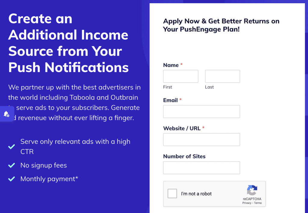PushEngage menyederhanakan proses permintaan monetisasi mereka dengan membuat formulir orientasi.