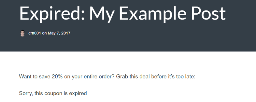 Tetapi kode pendek juga memungkinkan Anda menyesuaikan pesan yang ditampilkan setelah posting kedaluwarsa. Dengan menambahkan expired='pesan Anda' ke kode pendek, Anda dapat membuat pesan apa pun yang Anda inginkan.