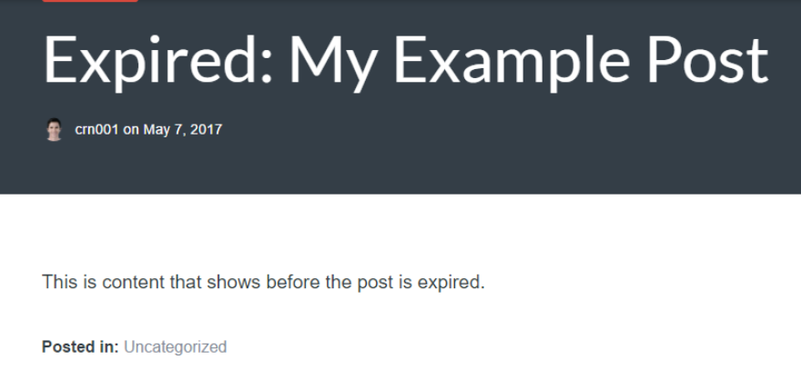 Kemudian, ketika tanggal itu tiba, plugin akan secara otomatis menambahkan teks sebelum judul posting yang menunjukkan bahwa itu kedaluwarsa: