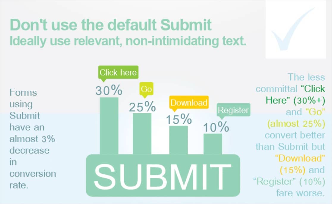 Jika Anda menggunakan kata Kirim pada formulir Anda, Anda dapat mengharapkan untuk melihat penurunan 3% dalam tingkat konversi Anda.
