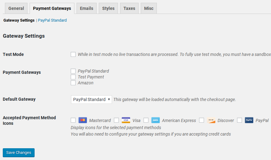 Klik Unduhan »Pengaturan lalu klik pada tab Gerbang Pembayaran untuk memilih dan mengatur gerbang pembayaran Anda.