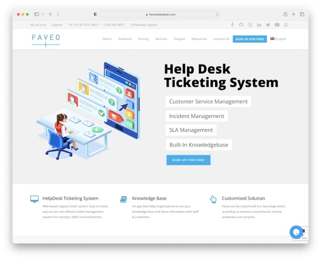 - Faveo unggul dengan penekanannya pada otomatisasi dan penyesuaian. Dirancang untuk bisnis yang membutuhkan solusi dukungan terukur, layanan ini menawarkan manajemen tiket yang efisien, basis pengetahuan yang dapat disesuaikan, dan beragam opsi integrasi, sehingga menyederhanakan proses dukungan pelanggan.