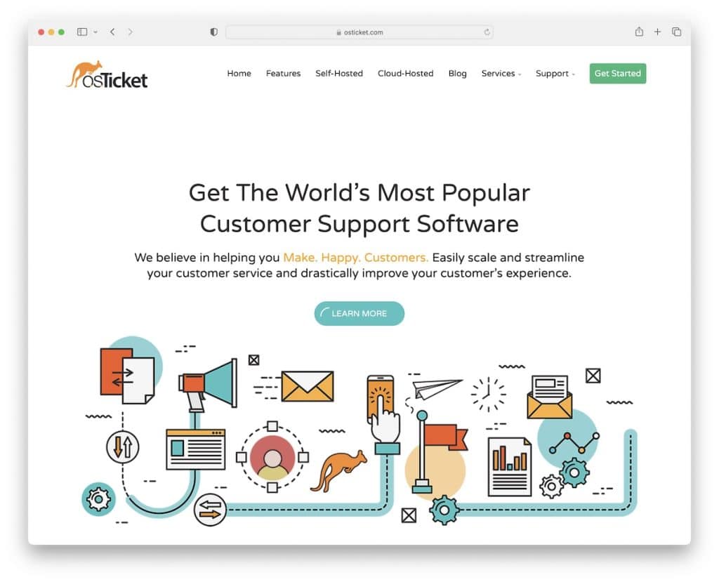 Pengaturannya sangat mudah, bahkan di hosting bersama, dan mendukung agen, tiket, dan kotak surat tanpa batas, semuanya dalam antarmuka yang 100% ramah seluler.
