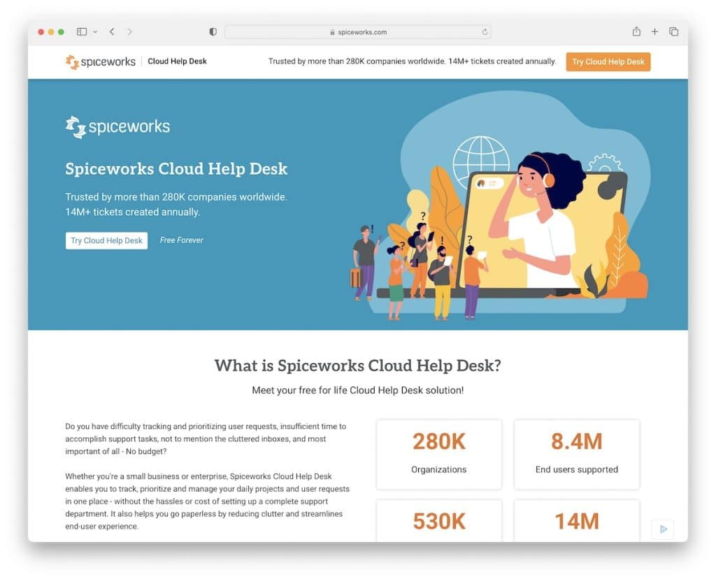Spiceworks, meskipun bukan sistem sumber terbuka namun merupakan perangkat lunak berpemilik yang bebas digunakan, sangat ideal untuk usaha kecil dan menengah. Sempurna bagi mereka yang mencari solusi komprehensif dan mudah digunakan untuk mengelola tugas dukungan pelanggan.