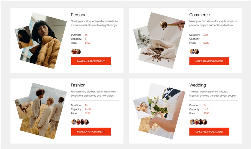 Sekarang mari kita lihat detail sistem pemesanan fotografer yang terintegrasi dengan plugin pemesanan MotoPress.