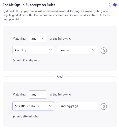 Dan jika Anda ingin membuat modal popup yang lebih bertarget, Anda dapat menggunakan aturan penargetan di bawah tab Aturan Penargetan :