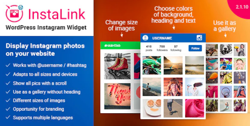 Plugin lain yang bagus untuk digunakan sebagai dinding Instagram untuk situs WordPress adalah InstaLink. Sebenarnya, dengan menggunakan yang satu ini, Anda dapat memilih untuk menampilkan feed dengan cara yang lebih disesuaikan dengan mengubah warna, tata letak, dll. Jadi, mendapatkan manfaat dari plugin ini dan menggunakan plugin WordPress terbaik untuk membuat halaman arahan modern, Anda dapat meroket keterlibatan di situs web Anda dan Instagram secara bersamaan,