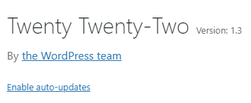 Klik tautan untuk Mengaktifkan pembaruan otomatis . Lakukan ini untuk setiap tema yang dipasang di situs Anda.