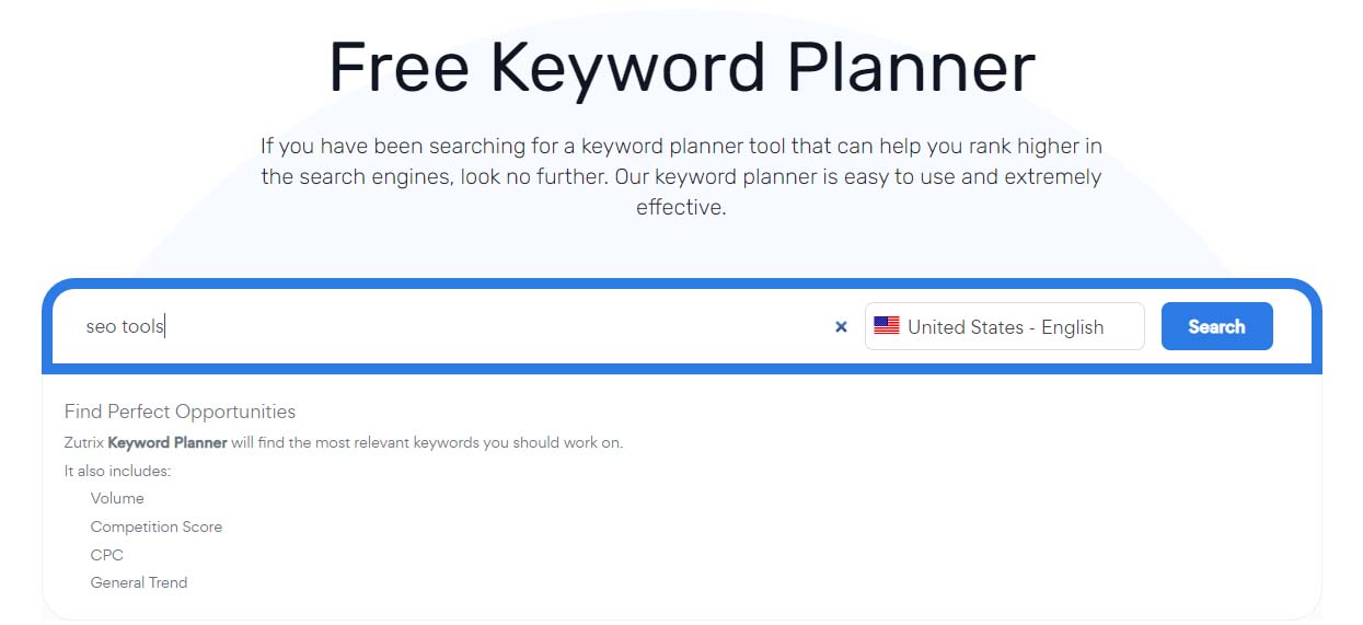 Lo strumento di pianificazione delle parole chiave di Zutrix è semplice da usare e può aiutarti a trovare centinaia di parole chiave sconosciute.