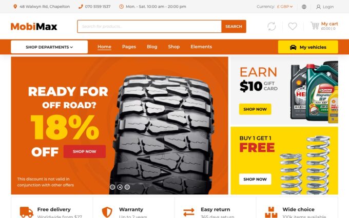 La vendita di ricambi per auto o qualsiasi altro tipo di prodotto non potrebbe essere più facile con Mobimax. Oltre ad essere completamente compatibile con il potente plug-in WooCommerce per la creazione di negozi per WordPress, questo tema include un'ampia libreria di modelli di alta qualità per il tuo negozio online.