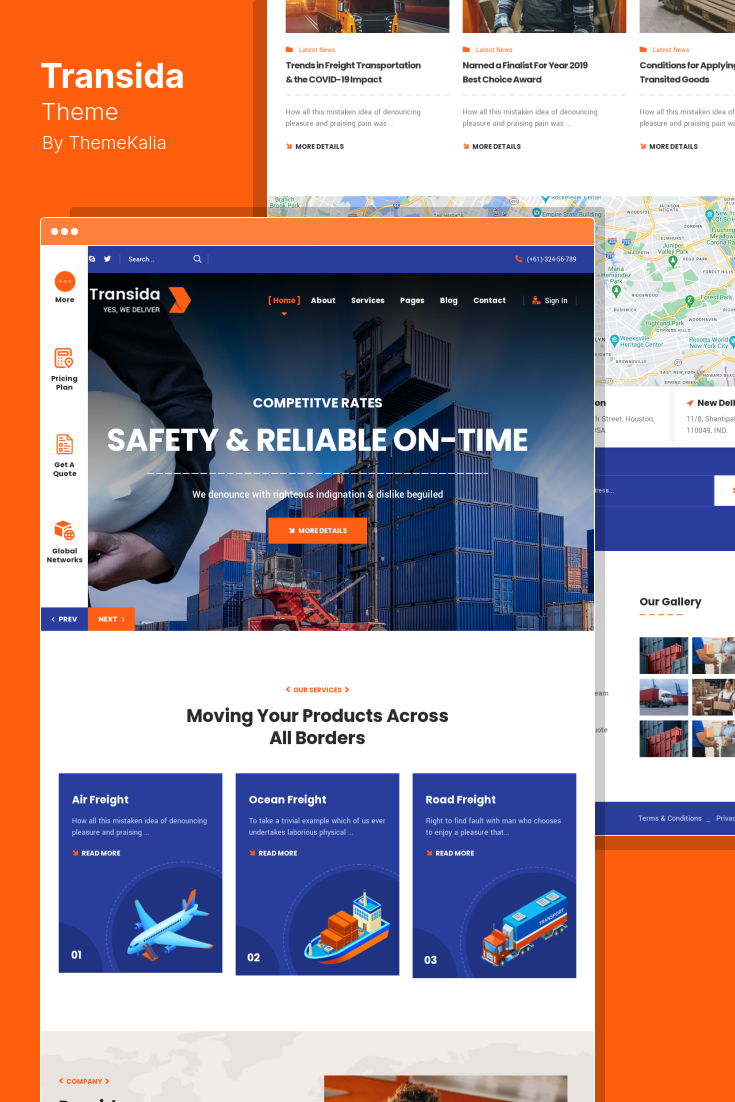 Transida è appositamente progettato per le aziende di logistica, autotrasporti, trasporti e piccole spedizioni che utilizzano il generatore di pagine Elementor come sistema di gestione dei contenuti.