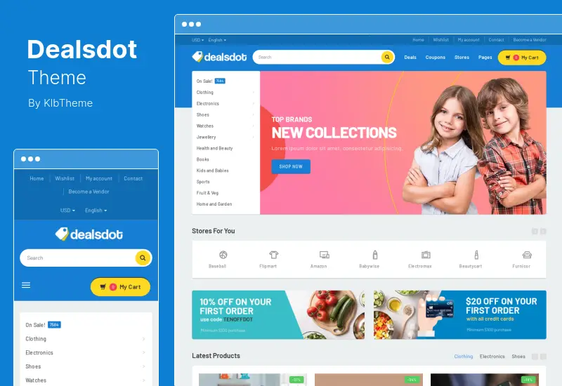 Il tema ti consente di creare mercati in cui i venditori possono vendere i loro prodotti, come quelli su Amazon, Aliexpress ed eBay.
