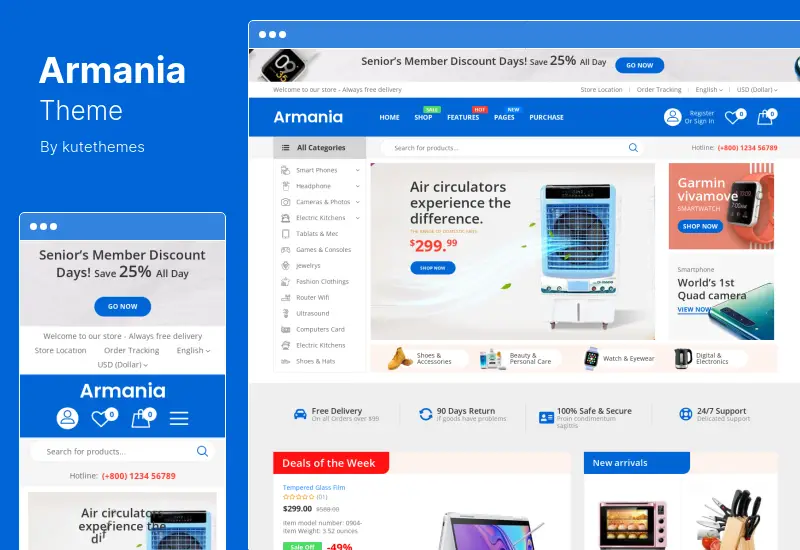 L'Armania è un tema WordPress Elementor WooCommerce moderno e flessibile per Marketplace. Questo tema è adatto per mercati multi-vendor, negozi di elettronica, negozi di mobili, negozi di abbigliamento, negozi hi-tech, negozi di alimenti biologici, negozi di cosmetici e negozi di accessori.