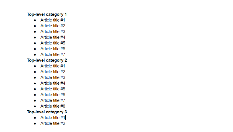 Più importanti dello strumento di strutturazione sono le categorie effettive che pensi. Vedi, devi trovare la struttura organizzativa logica che abbia senso per i tuoi clienti. Non quello che ha più senso per te .