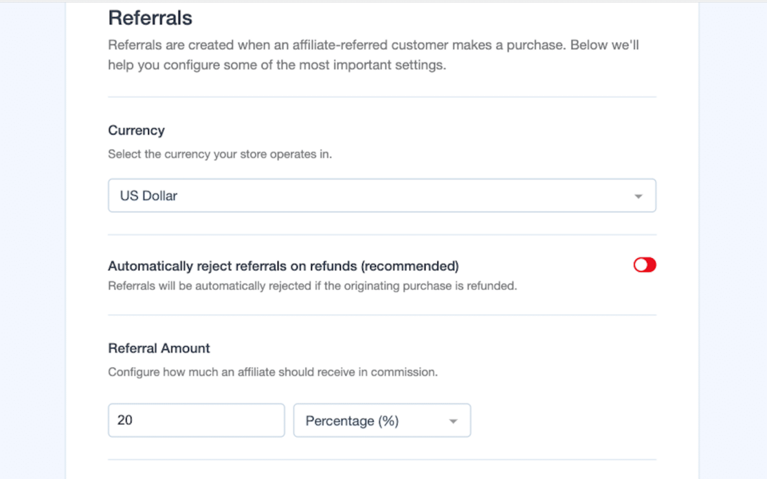 Ora che i plugin sono integrati, dovrai configurare la struttura delle tue commissioni. Scegli la tua valuta e l'importo che desideri pagare a ciascun lead.