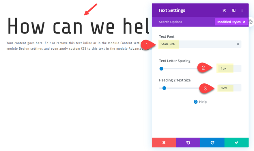 Inizieremo con la modifica del collegamento 1. Aprire le impostazioni del modulo di testo per il collegamento 1 e aggiornare quanto segue: