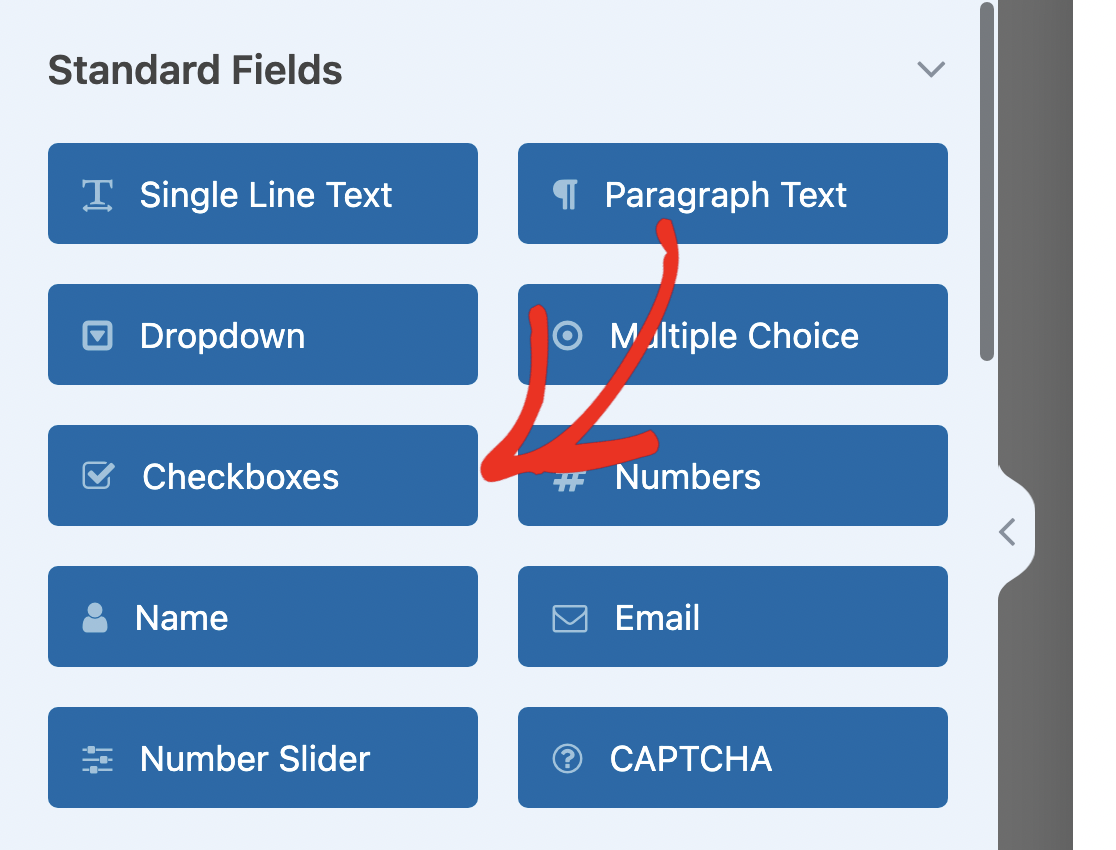 Per aggiungere il campo Caselle di controllo al modulo, puoi fare clic su di esso nel pannello di sinistra o trascinarlo direttamente nell'anteprima del modulo.