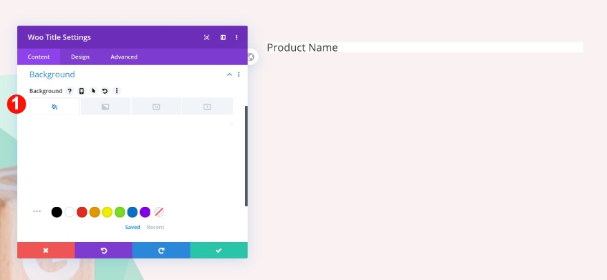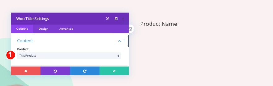 Nella seconda colonna, aggiungi un modulo titolo woo e seleziona questo prodotto nella scheda contenuto.