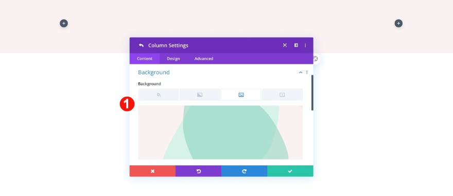 Nell'impostazione per la colonna 1, aggiungi il design dell'immagine di sfondo che hai creato con le forme sovrapposte.