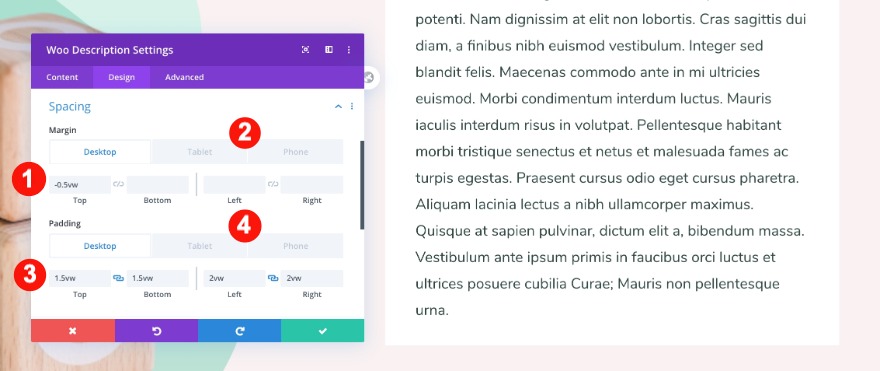 Nella scheda Design, regola i valori per il badge di vendita come segue.