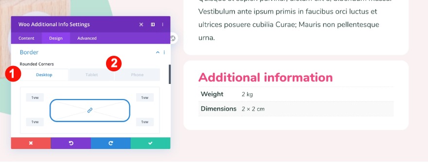 Infine, regola il bordo sia per le dimensioni desktop che reattive.