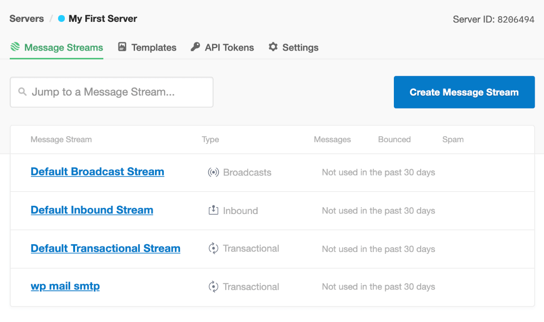 Postmark offre diversi flussi di messaggi per separare le tue e-mail in base allo scopo. Ad esempio, puoi utilizzare un flusso per le email transazionali e un altro per le email di notifica. Ma questo è del tutto facoltativo.