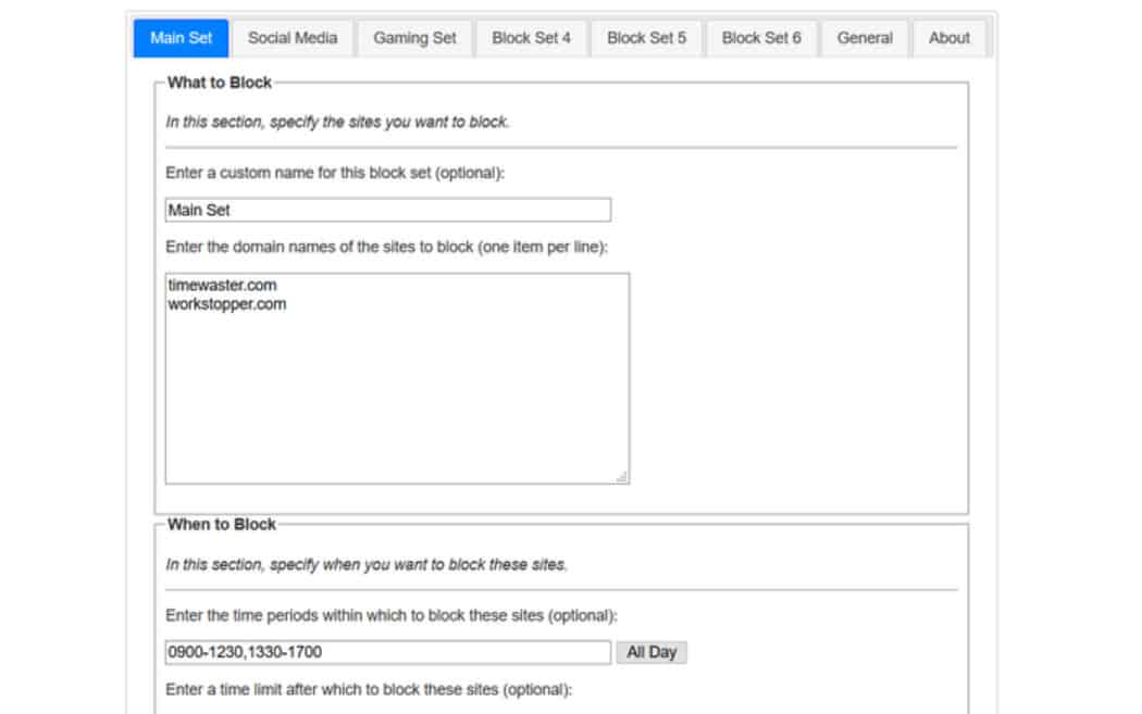 Ad esempio, se lavori tra le 9:00 e le 17:00, puoi bloccare facilmente tutti i social media e le distrazioni nel tuo browser web. Bloccare i siti Web è la soluzione migliore se stai cercando di diventare più produttivo durante il giorno. Rimuove la distrazione di siti Web come Facebook, YouTube e altri.