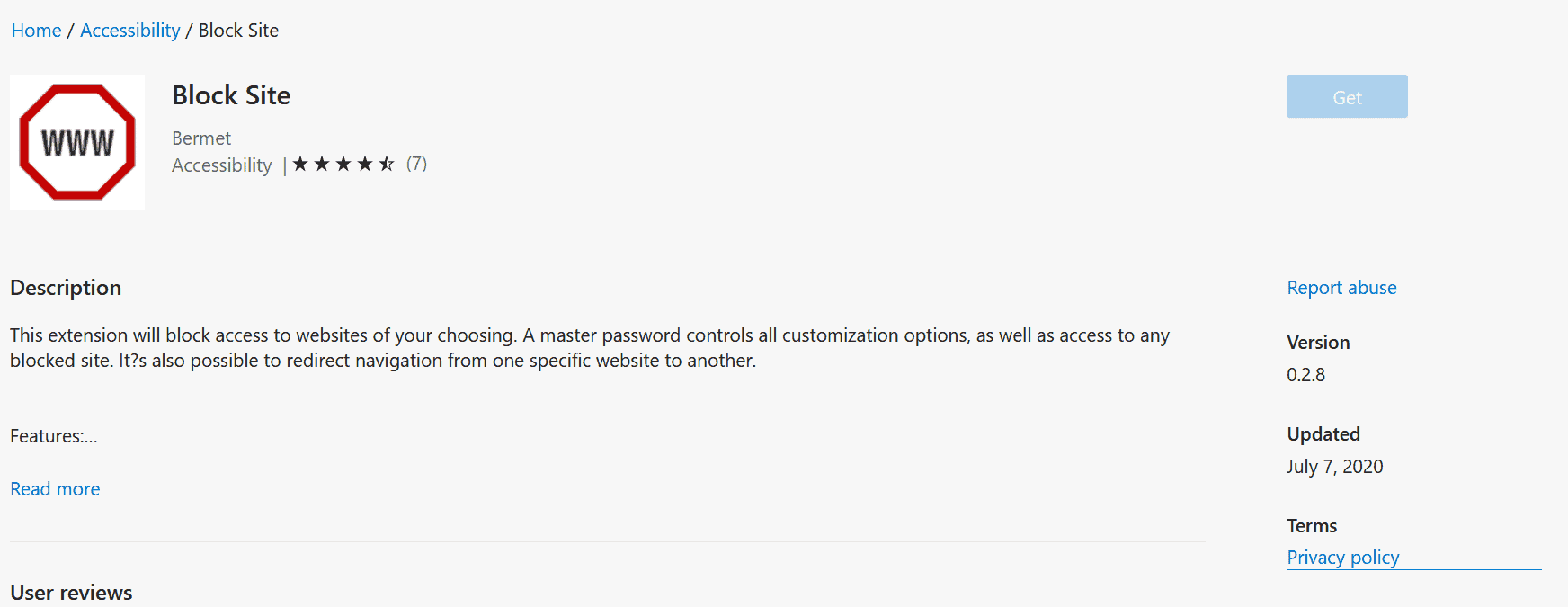 Il miglior componente aggiuntivo di Microsoft Edge per bloccare i siti è Block Site di Bermet. Semplice da usare, mantenuto attivamente e ha buone recensioni.
