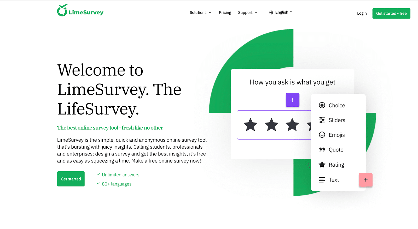 LimeSurvey è uno strumento di sondaggio gratuito e open source che può essere utilizzato sui siti WordPress utilizzando un plug-in. Questo strumento include un tipo di domanda in scala Likert, oltre ad altri tipi e funzionalità di domande di indagine avanzate.