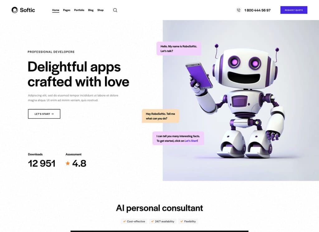 Softic è un tema WordPress per software e applicazioni mobili SAAS contemporaneo e potente, progettato con un'estetica elegante e moderna su misura per le esigenze delle applicazioni Web e delle app mobili di oggi. Offre una pagina di destinazione predefinita ottimizzata sia per Apple Store che per Google Play, adatta alle applicazioni per smartphone IOS e Android. Softic è il tuo strumento essenziale per avviare la tua azienda privata o attività aziendale, indipendentemente dal tuo settore, che si tratti di web design, marketing, pubblicità, architettura o interior design. Con la perfetta integrazione di Elementor Page Builder e un pannello di amministrazione intuitivo, Softic consente una personalizzazione semplice di ogni aspetto del tuo sito Web, integrato da layout di pagina intuitivi, espandibili tramite codici brevi e widget personalizzati e splendide gallerie per mostrare i tuoi servizi e il tuo portfolio. Dotato di cinque home page distinte, diversi layout dei post di blog, supporto del portfolio e compatibilità con Elementor, widget personalizzati e codici brevi, Softic è la scelta definitiva per creare una presenza online accattivante.