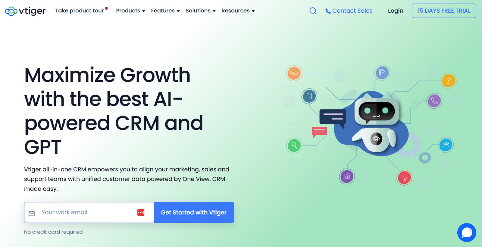 - Assistenza dell'IA. Vtiger offre un arricchimento intelligente dei dati, suggerendo modifiche basate su algoritmi intelligenti.