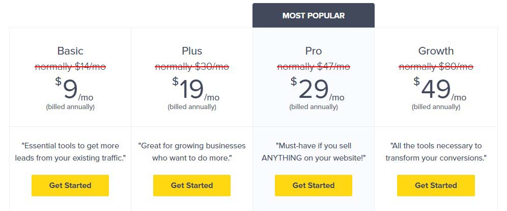 Tuttavia, quando confronti le sue caratteristiche con quelle di altri strumenti di generazione di lead, come Thrive Leads, vedrai che rimane lo strumento più potente e conveniente sul mercato.