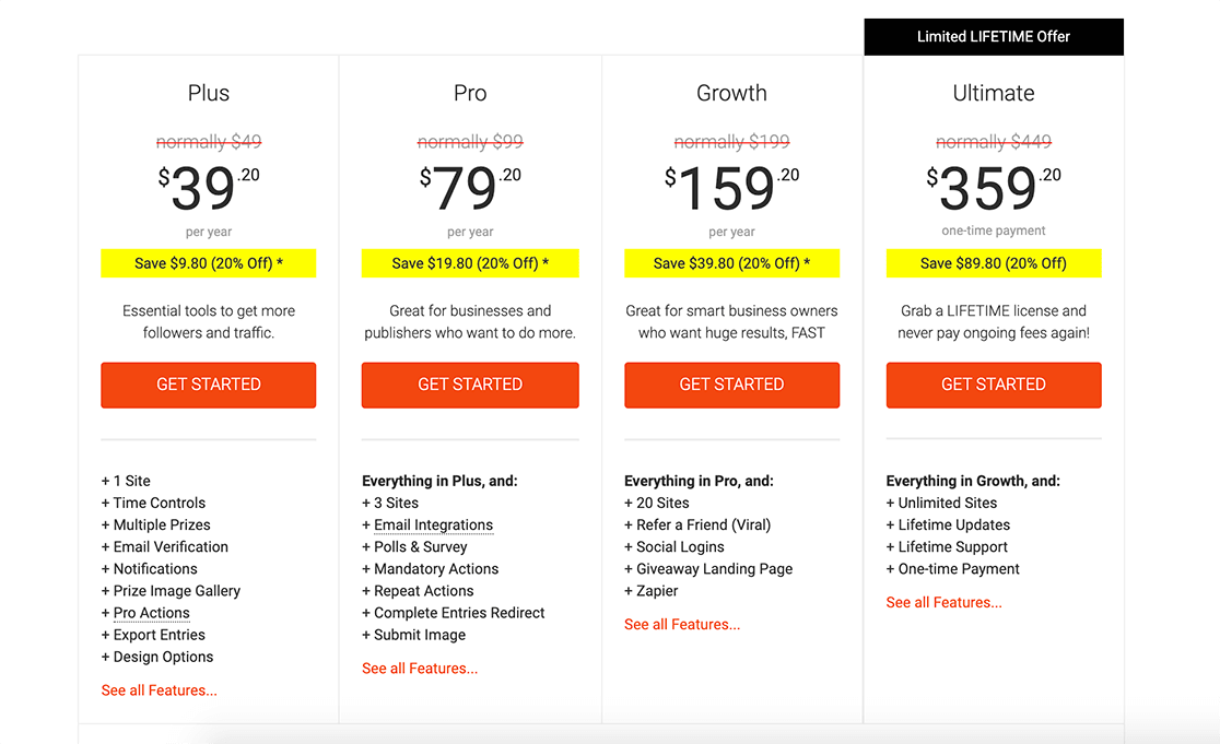 Consigliamo il piano di crescita RafflePress, che costa $ 159,20 all'anno.