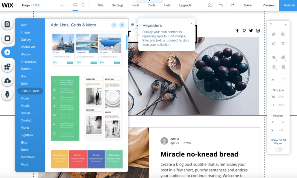 L'editor drag and drop combinato con modelli gratuiti rende Wix una piattaforma attraente per i principianti (che non amano la progettazione o la programmazione).