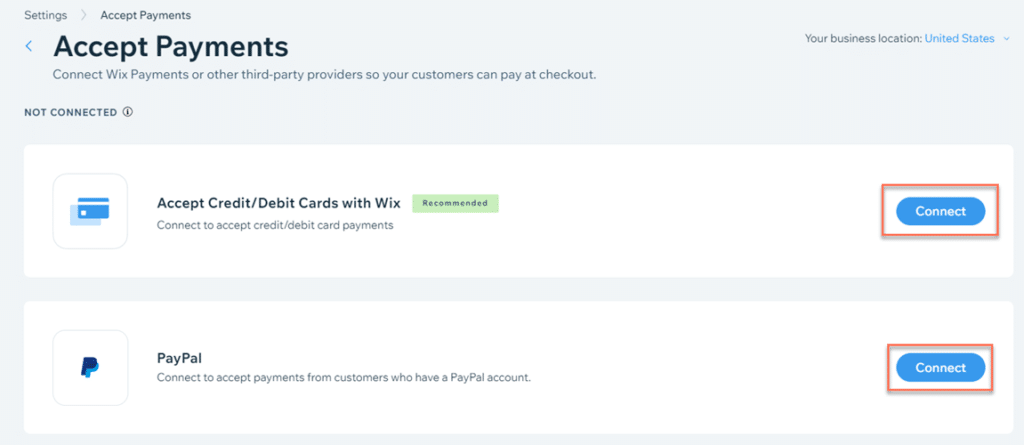 Wix ha gateway di pagamento come Wix Payments, Affirm, AfterPay, Alipay, Bitpay, Braintree, Klarna, Paypal, Pinwheel, Square, Stripe e molti altri. In effetti, Wix ha quasi 50 principali fornitori di servizi di pagamento.