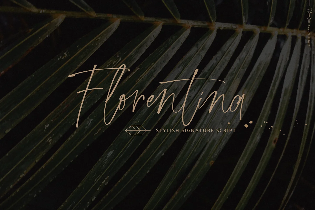 Florentina è un carattere di script elegante che darà un tocco istantaneo ai tuoi progetti. Questo carattere è stato progettato con cura, combinando l'eleganza con un tocco moderno. Include 48 combinazioni di lettere di legature che ti danno quello splendido aspetto scritto a mano. Inoltre, include anche 27 caratteri alternativi se vuoi cambiarlo.
