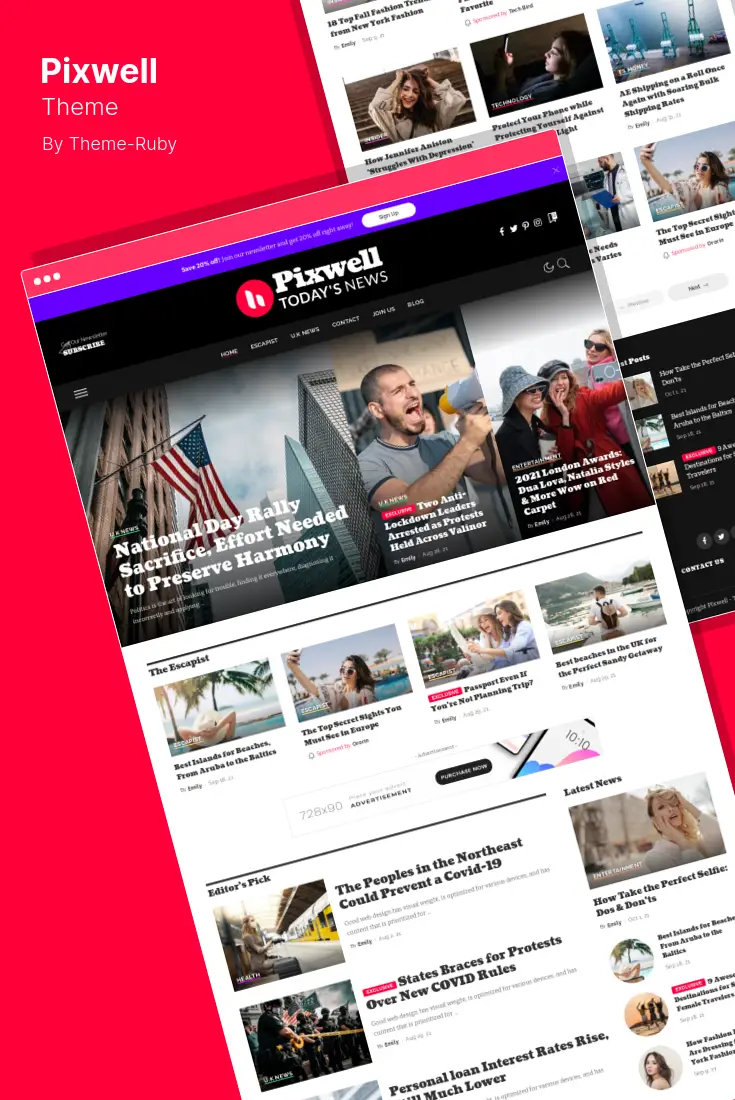 Pixwell è un tema WordPress intuitivo e versatile, perfetto per una vasta gamma di nicchie. Che tu stia creando un sito di notizie o un blog personale, Pixwell ha tutto ciò di cui hai bisogno per creare un sito web professionale che coinvolga il tuo pubblico e si posizioni bene nei motori di ricerca.