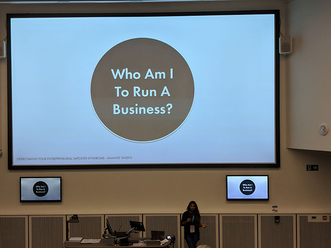 Un altro discorso di spicco è stato Amande Tanefo di Launch and Sell sull'affrontare la sindrome dell'impostore. Un problema comune a tutti tranne che ai più sicuri di sé. (controlla anche i suoi temi WordPress femminili, sono fantastici.)