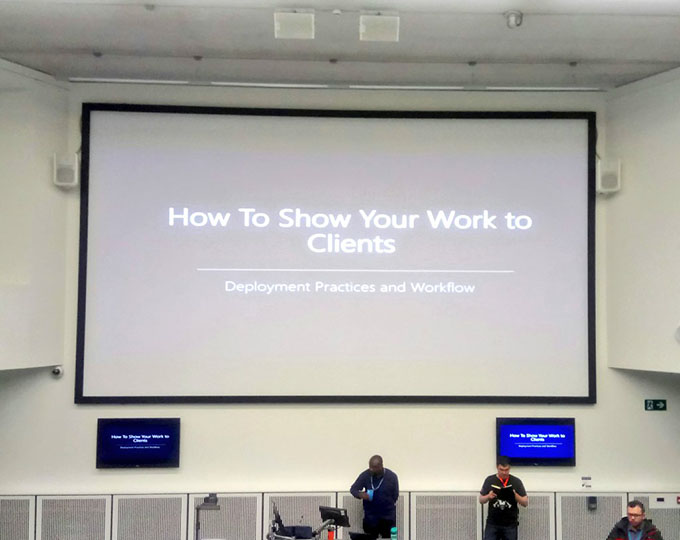 La presentazione di CJ Andrew sulle sue pratiche di distribuzione e flusso di lavoro ha dimostrato come fosse possibile mostrare ai clienti il lavoro in corso per lo sviluppo, il test e l'implementazione in modo gestito. È stata un'eccellente scomposizione della logica per creare ambienti segregati con flussi di interfaccia definiti, per mostrare i progressi ai clienti e ottenere i contenuti necessari in modo tempestivo.