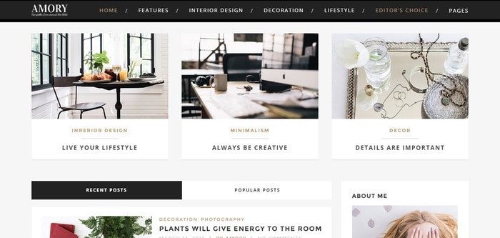 Amoryは、カスタマイズが非常に簡単で、ユーザーの読みやすさを重視し、SEOに最適化されており、8つのブログレイアウトが含まれています。
