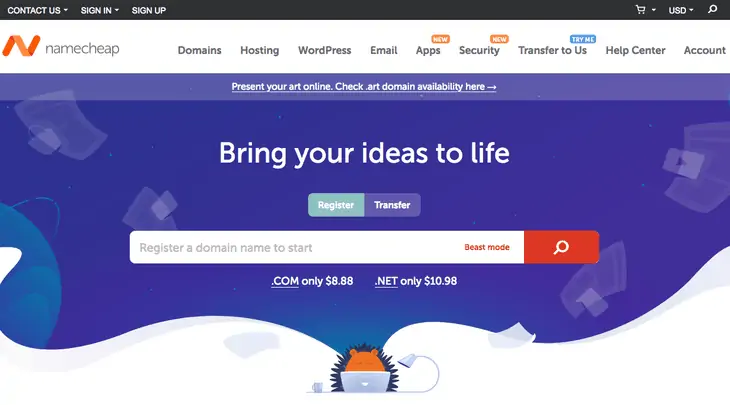 最後に、ドメインレジストラのもう1つの優れたオプションであるNamecheapがあります。 Namecheapは、適切なドメイン名を見つけるのに役立つ強力なドメイン検索ツールを備えています。 ドメイン名が利用できない場合、Namecheapは適切なドメイン名を提案します。