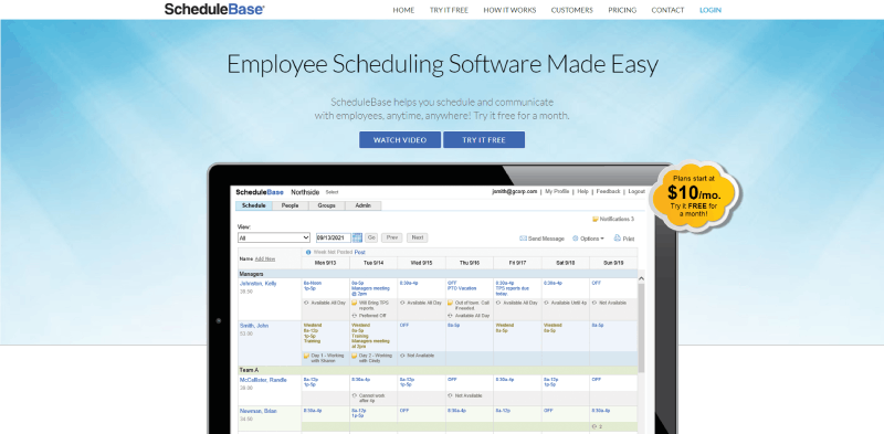 ScheduleBase の月額料金は、従業員の数によって異なります。 開始価格は月額 10 ドルで、従業員数が 500 人までの企業の場合は最大 250 ドルになります。