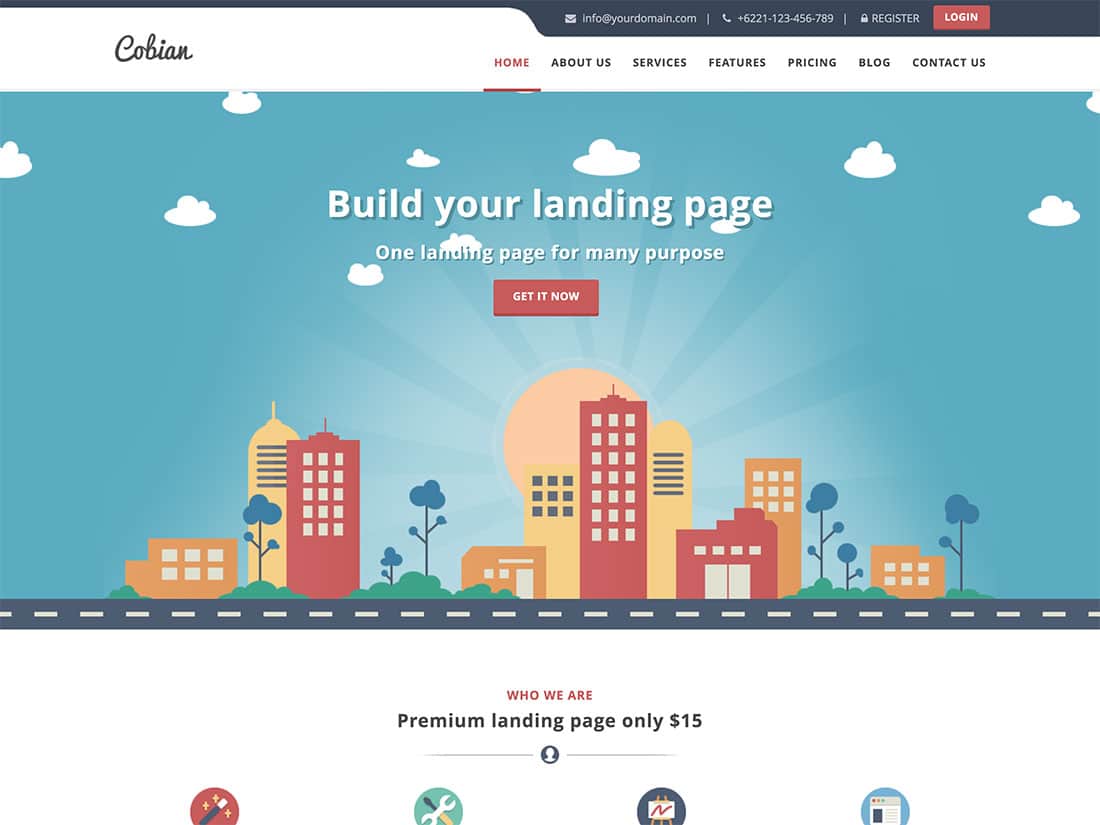 Cobianは真のフラットなデザインであり、WordPressWebサイトでこのタイプのテーマを探している人には魅力的です。