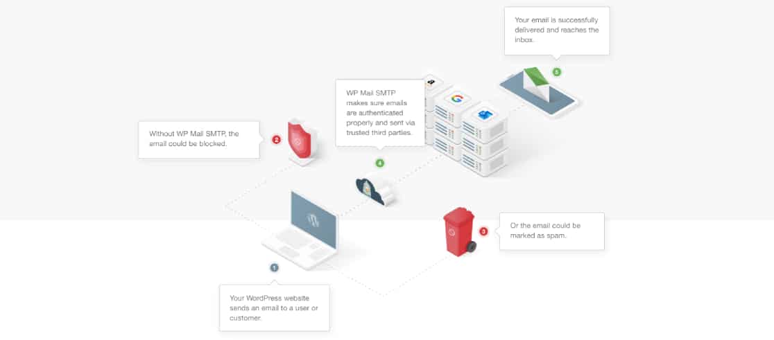 WP Mail SMTP は、ドメインの認証の詳細を提供し、Gmail などのサードパーティのメーラーを介してメールを渡すことで機能します。