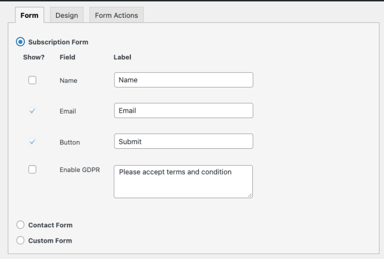 これとは別に、フォームを使用してサブスクライバーと即座に接続できます。 [設定]タブ内で、自動メール返信を設定できます。 この機能は、新規加入者を歓迎したり、発注書やフォームの送信を確認したり、デジタル製品を配信したりするために使用できます。 フォームでのユーザーの選択に基づいて送信されるカスタム通知を設定することもできます。