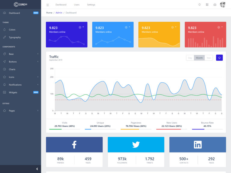 豊富な機能セットのおかげで、無料のCoreUI Laravel管理テンプレートパックは、プロジェクトを完了したり、少なくともプロジェクトを開始したりするのに十分な場合があります。 この段階でお金を投資することなく、アイデアのプロトタイプをすばやく作成する必要がある場合は、CoreUILaravelが適しています。