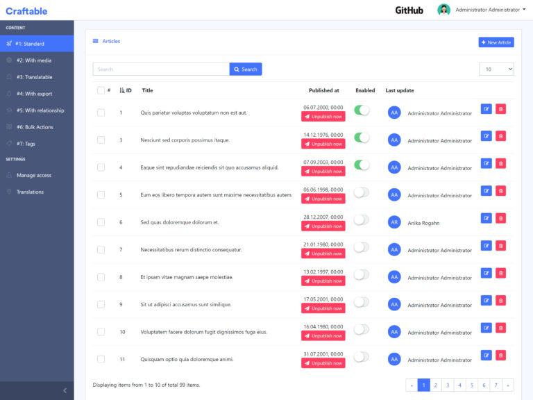 Craftableのオンラインデモにログインすると、この無料のLaravel管理テンプレートセットで何ができるかがわかります。